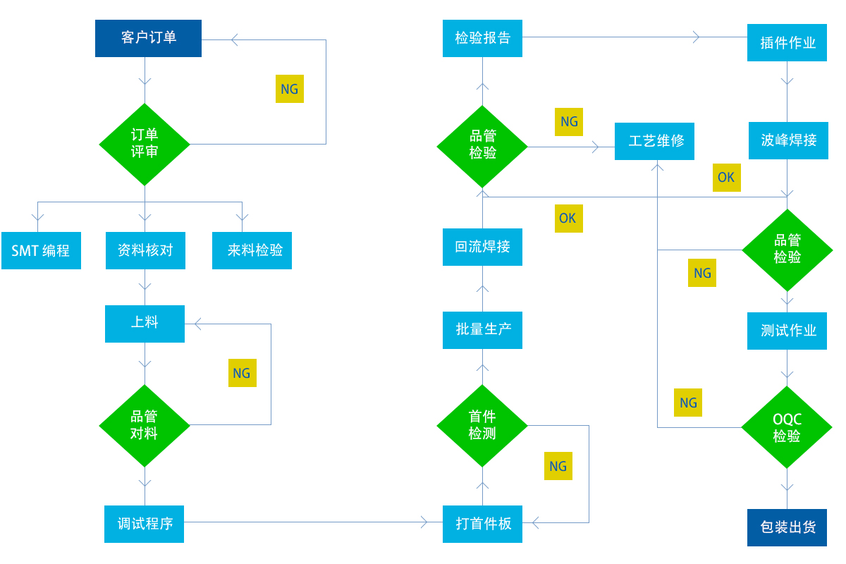 SMT貼片生產(chǎn)線4條,配備日本雅馬哈全自動(dòng)貼片生產(chǎn)線、全自動(dòng)錫膏印刷機(jī)、八溫區(qū)、十溫區(qū)回流爐、AOI、一體式貼片機(jī)等高端設(shè)備,芯片生產(chǎn)能力600萬焊接點(diǎn)/天,波峰焊加工日最大生產(chǎn)能力50萬點(diǎn)。具有安裝01005和0.40毫米間距BGA布局能力和電腦主板波峰焊接能力。